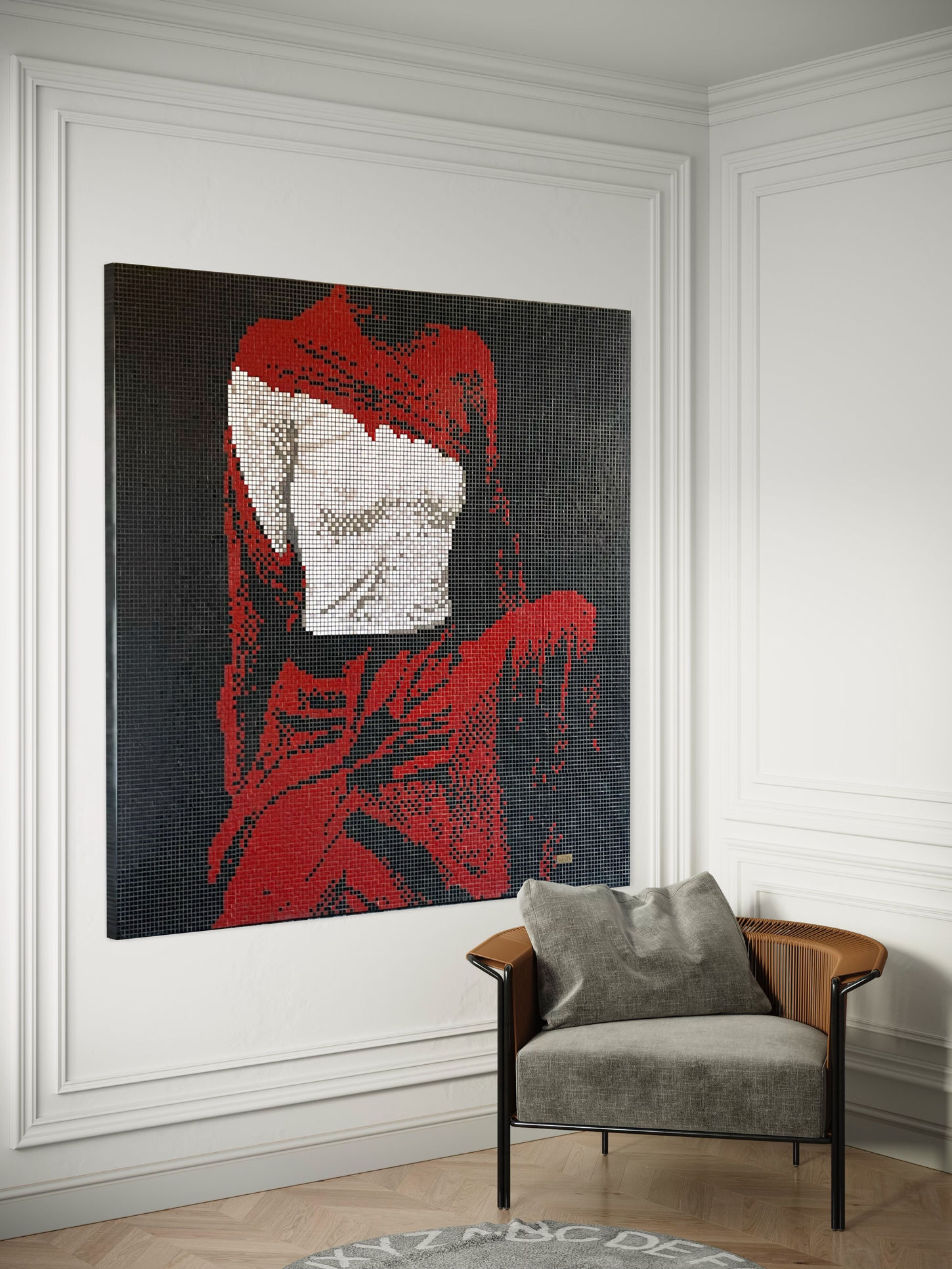 Introducing “Linda”, a breathtaking vitreous mosaic collage that embodies the essence of elegance and precision. Composed of 23,409 individual glass tiles in 6 striking colors, each piece is hand-laid with meticulous care, forming a powerful interplay of black and red tones. Measuring 66.2" × 66.2" (168 × 168 cm), “Linda” is not merely a mosaic, but a museum-quality statement of cultural artistry and modern sophistication.